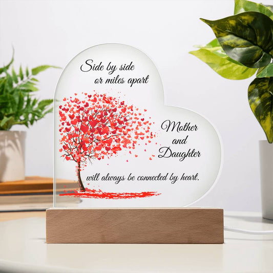 Mom Gift from Daughter | Printed Heart Acrylic Plaque | LED Night Light | Side by Side or Miles Apart